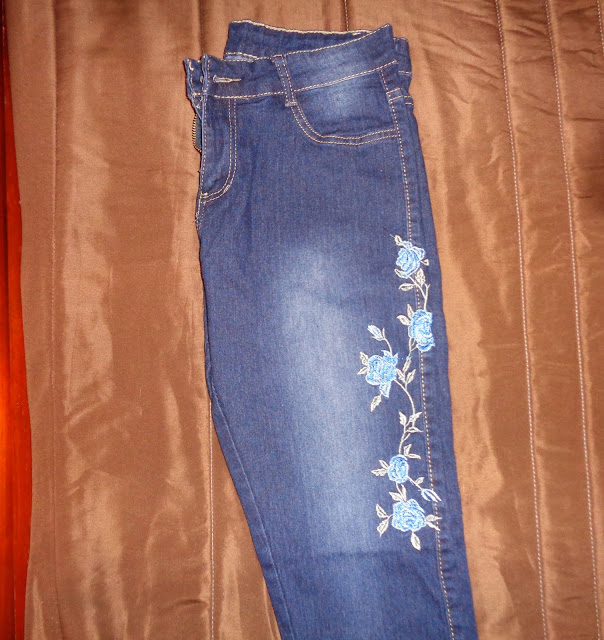 As calças de ganga com os bordados desiludiu-me. Na imagem parecia ser de cintura subida e parecia assentar bem melhor no corpo, mas infelizmente isso não aconteceu. Encomendei um M e nas pernas fica bem, mas de cintura e no rabo fica péssimo.